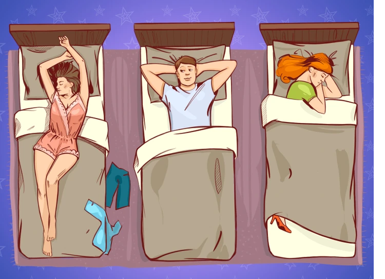Có ba người đang ở trong căn phòng ngủ. Theo quy định, đến giờ giới nghiêm sẽ không ai được rời khỏi phòng. Tuy nhiên, trong số họ, một người lén ra ngoài và trở lại giường.