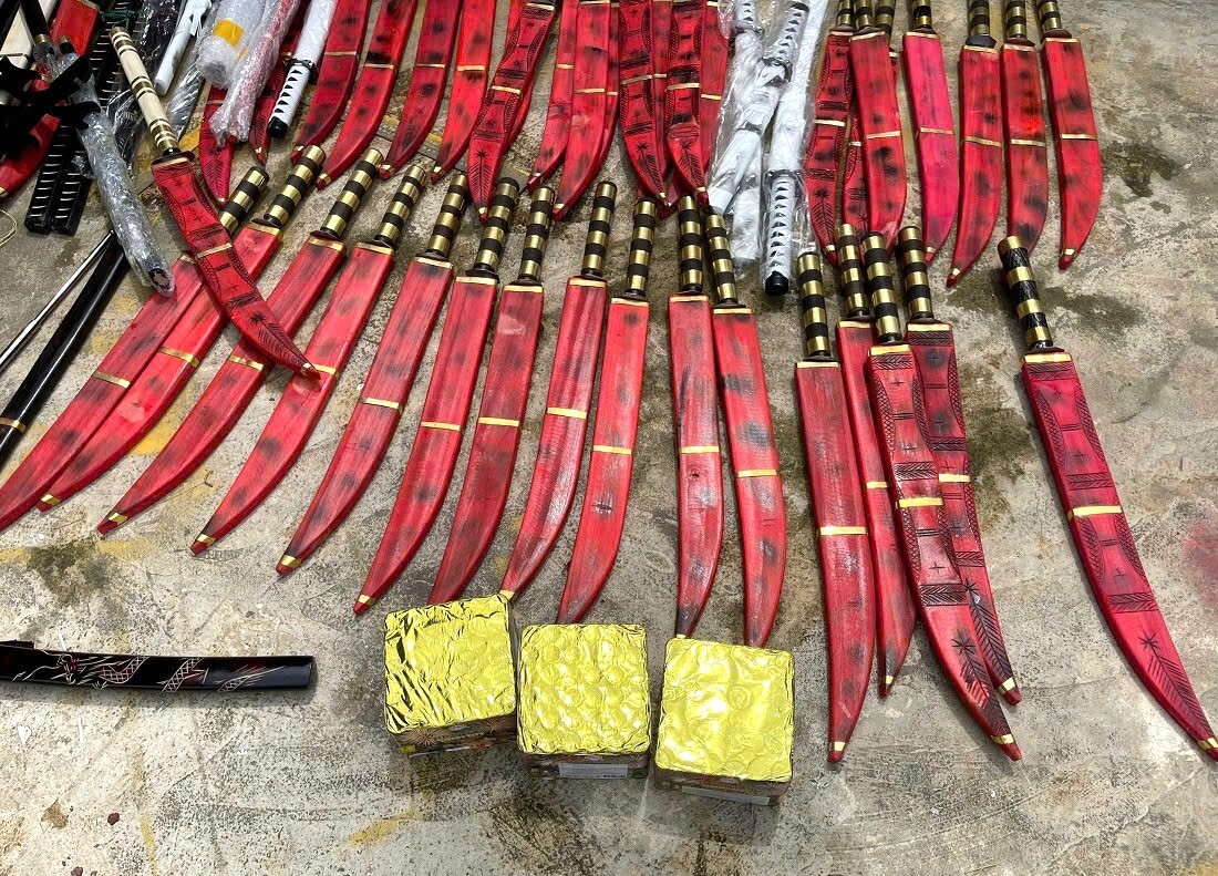 Tiến hành kiểm tra nhà riêng của đối tượng, lực lượng chức năng thu giữ: 66 dao, kiếm các loại; 40 bình xịt hơi cay và 3 hộp pháo do nước ngoài sản xuất.