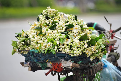 Trong tiết trời giao mùa ở Hà Nội, trên những con phố Hàng Ngang, Hàng Đào, Đồng Xuân, Chùa Bộc, Xã Đàn, Phạm Ngọc Thạch,… hoa bưởi cùng người bán hàng rong “xuống phố” tỏa hương thơm nồng nàn. Ảnh: Internet
