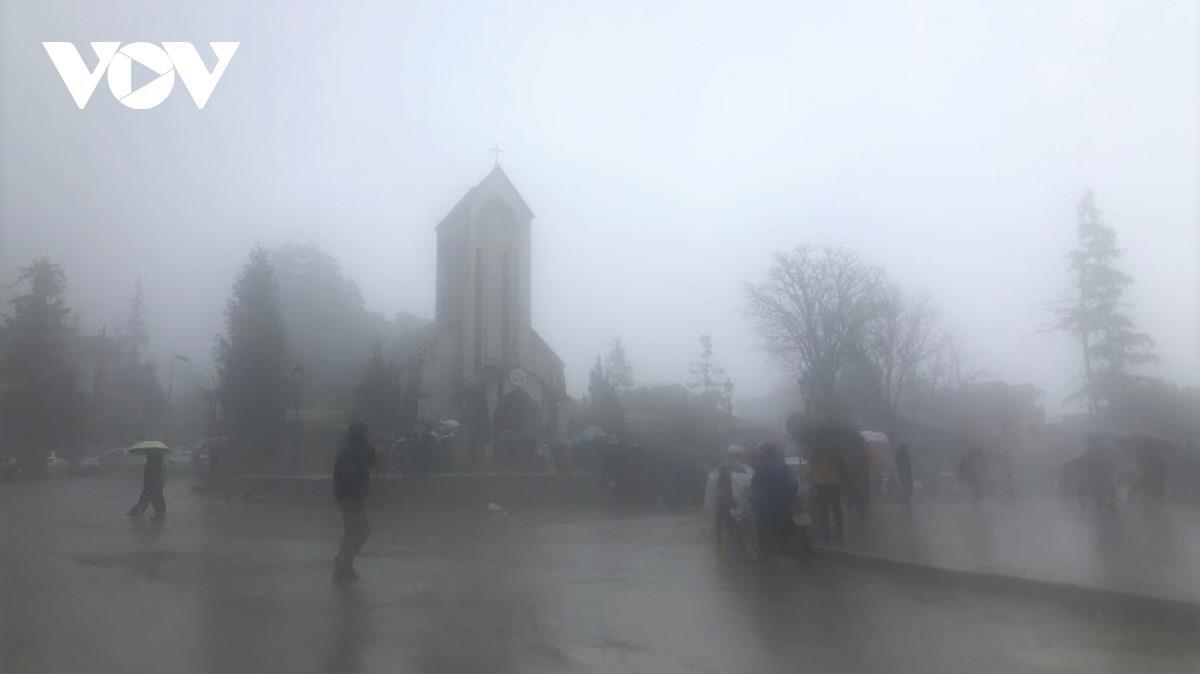 Không khí lạnh kèm theo mưa khiến nhiệt độ các địa phương ở Lào Cai, nhất là Sa Pa giảm thấp.