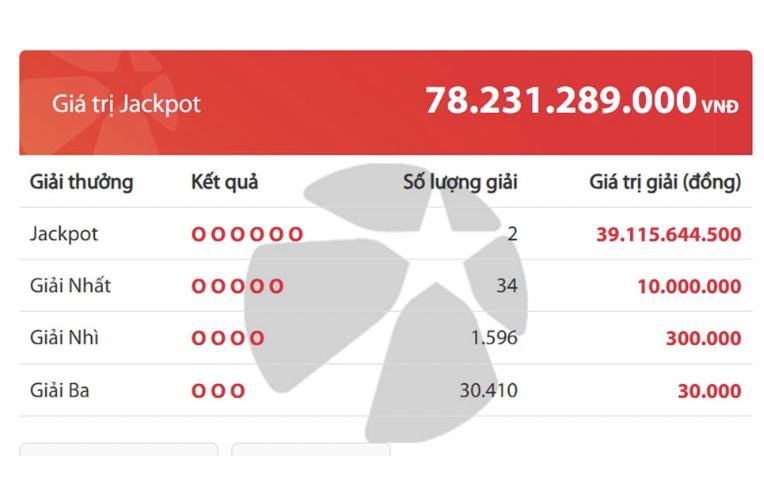 Như vậy, giá trị của mỗi tấm vé số trúng giải Jackpot hôm nay là hơn 39 tỷ đồng.