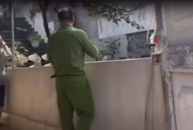 Đoạn clip ghi lại vụ việc Đặng Từ Thịnh nhốt công an xã trong nhà. (Ảnh cắt từ clip).