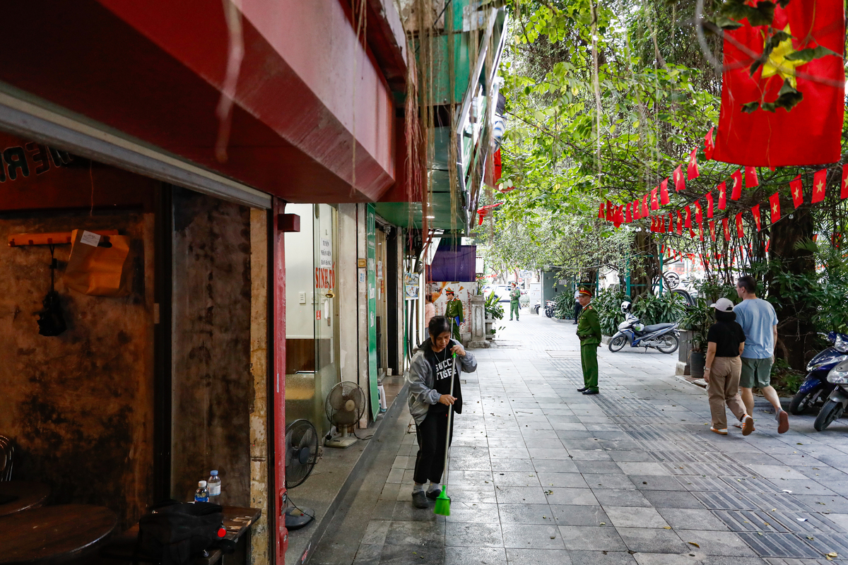 Trên tuyến phố Lý Thường Kiệt, Công an Phường Cửa Nam cũng ra quân tăng cường vận động, tuyên truyền các chủ hộ kinh doanh thực hiện quy định về trật tự vỉa hè, lòng đường.
