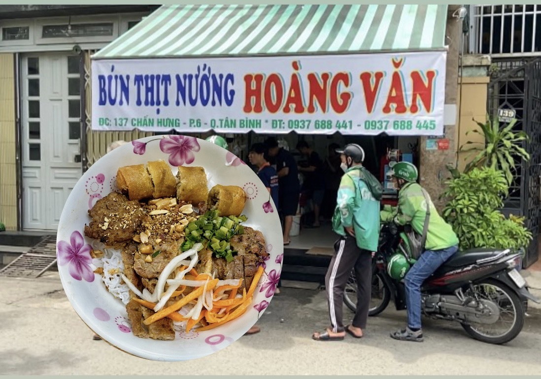 Quán bún thịt nướng Hoàng Văn nằm tại số 137, đường Chấn Hưng, quận Tân Bình, TP.HCM. Quán chuyên về bún thịt nướng, mức giá mỗi phần 38.000 đồng, phù hợp với học sinh, sinh viên và người lao động.