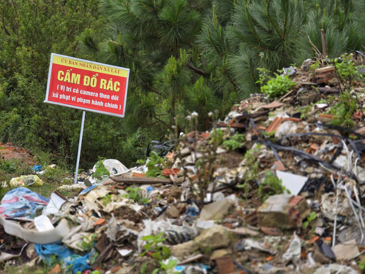 Đà Lạt vốn nổi tiếng với những rừng thông tuyệt đẹp. Thế nhưng hiện nay, những địa điểm đẹp đẽ ấy lại bị "bao vây" bởi rác thải. Trong hình là rác thải đủ loại do người dân vứt bừa bãi trên một đồi thông ở phường LangBiang. Đây là khu vực nhiều du khách qua lại và có nhiều điểm du lịch nổi tiếng: Thủy điện Ankroet, suối Vàng, Làng Cù Lần…