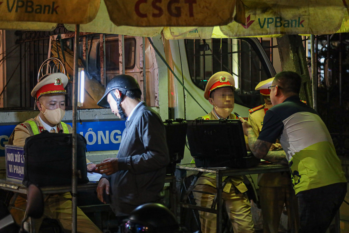 Cụ thể, khi phát hiện tài xế Cao Lương Bằng (ở Láng Thượng, Đống Đa, Hà Nội) có dấu hiệu không tỉnh táo, chạy xe loạng choạng, tổ công tác lập tức dừng xe và yêu cầu tài xế vào điểm đo nồng độ cồn. Thời điểm kiểm tra, anh Bằng không xuất trình được giấy phép lái xe và đăng ký xe theo quy định. Sau khi anh Bằng thổi nồng độ cồn, máy đo cho ra kết quả ở mức 0,683 mg/lít khí thở, vượt quá mức kịch khung được quy định tại Nghị định 100 (0,4mg/lít khí thở). Với mức vi phạm này, tài xế bị phạt 7 triệu đồng, tước bằng lái 22-24 tháng, tạm giữ xe trong vòng 7 ngày.