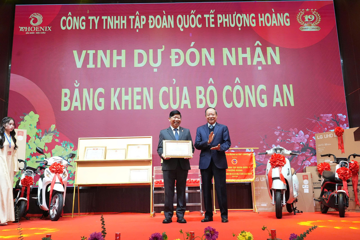 Tối 30/1, tại phường Vũ Ninh (tỉnh Bắc Ninh), Công ty TNHH Tập đoàn Quốc tế Phượng Hoàng tổ chức lễ tổng kết hoạt động năm 2025, triển khai nhiệm vụ năm 2026 và đón nhận các phần thưởng của Bộ Công an, UBND tỉnh Bắc Ninh, UBND tỉnh Sơn La cùng nhiều cơ quan, tổ chức.