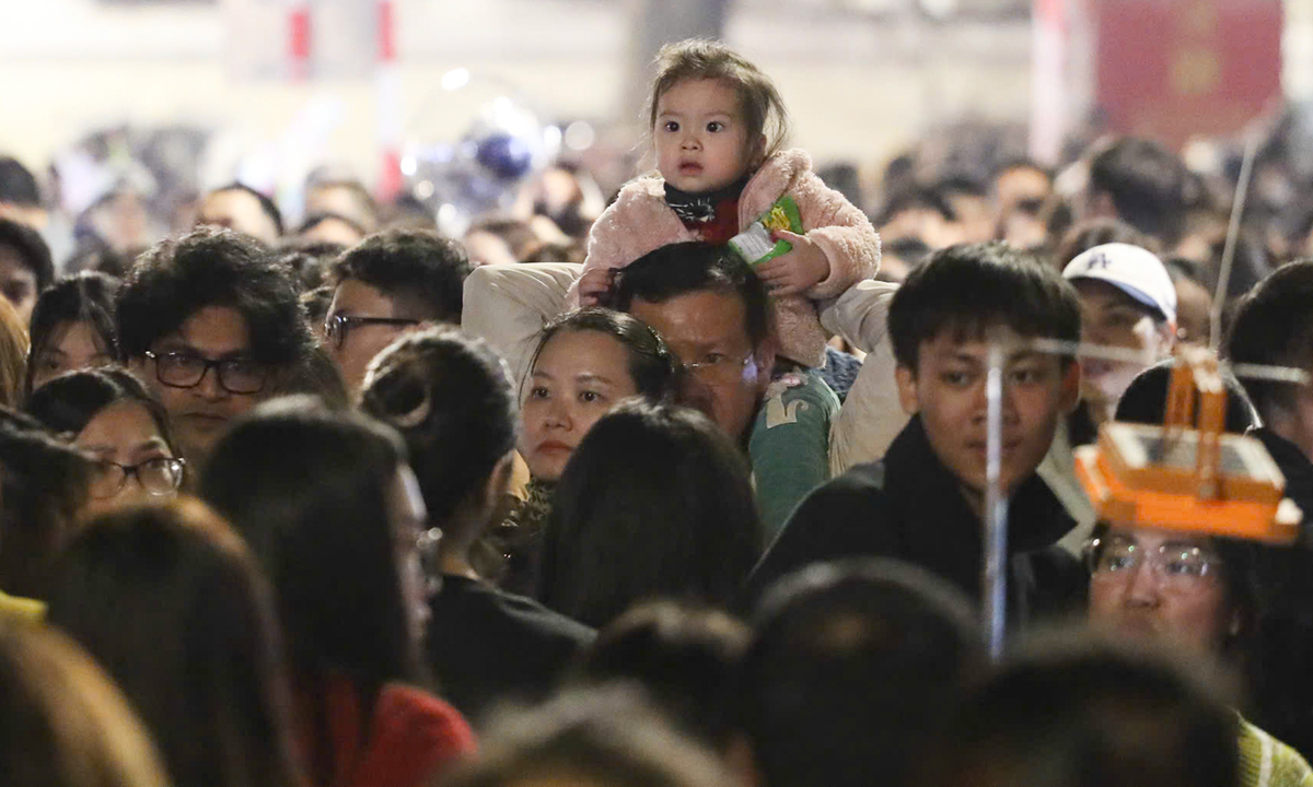 Trong số đông người dân đổ về khu vực trung tâm, nhiều gia đình đưa theo con nhỏ cùng tham dự lễ hội countdown. Trẻ em theo chân cha mẹ chen giữa biển người, có em được nắm tay, có em được bế hoặc ngồi trên vai người lớn để tránh bị lạc.
