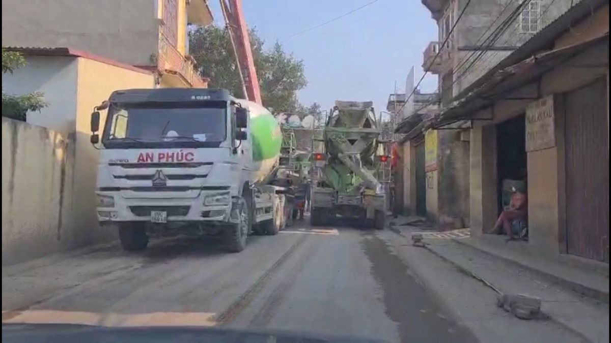 Người dân thôn Nghĩa Chỉ, xã Minh Đạo (Tiên Du, tỉnh Bắc Ninh) bức xúc việc các xe ô tô tải chở bê tông và vật liệu xây dựng tàn phá đường làng.